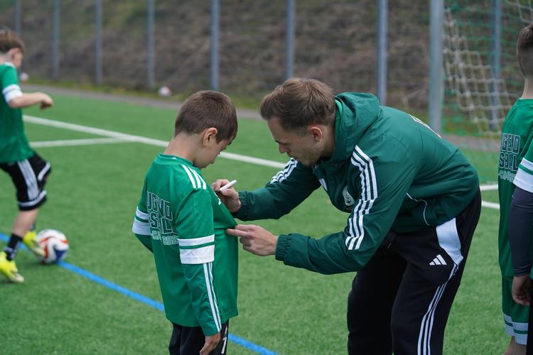 Am Nachmittag erhielten die Kinder einen exklusiven Einblick hinter die Kulissen und verfolgten das Mannschaftstraining unserer Profis hautnah. Zuvor wurden noch einmal fleißig Autogramme gesammelt, bevor der Tag einen feierlichen Abschluss fand: Die Urkunden für das bestandene DFB-Abzeichen sowie einige Geschenke wurden an die stolzen Teilnehmer überreicht.